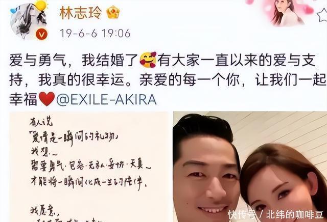 这让林志玲十分感动,她觉得这就是她需要的真命天子。 2019年6月,林志玲突然在社交平台官宣结婚,说自己嫁给了爱情。